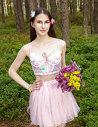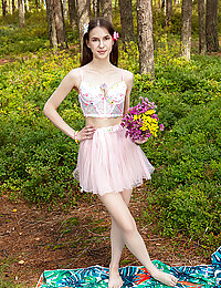 Stunning teen girl sexually strips naked and shows off her perfect tits and pussy outdoors