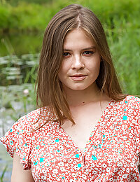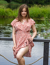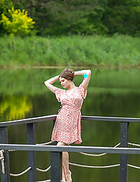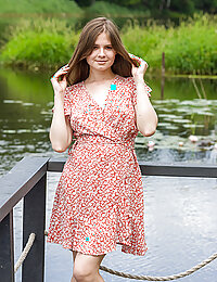 Teen hottie sensually strips naked by the river demonstrating her luscious tits and pussy