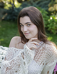 Attractive slim girl playfully strips naked outdoors flashing her nice tits and sweet pussy